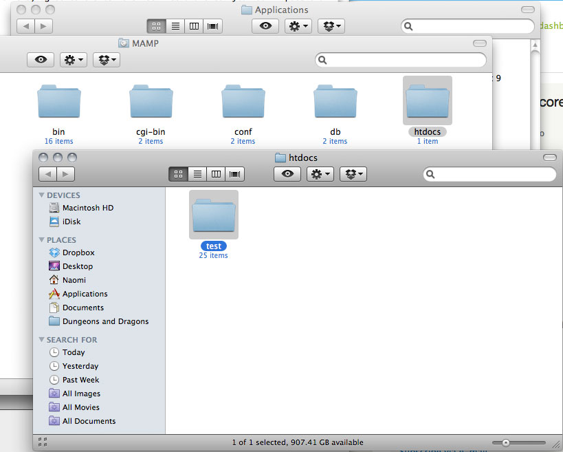 And it really is that simple... It probably took me longer to type out the steps than it will for you to get this server set up. Of course, there's no site or even a page or anything else set up yet. For that, you'll need to place your site into the htdocs folder inside the MAMP folder; it should be empty right now: