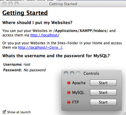 With both of these systems, you will need to make sure that the application is running when you want to work on your local test server. This means starting the application and making sure the Apache server and the MySQL server are running before pulling up the site in your browser and starting to work.