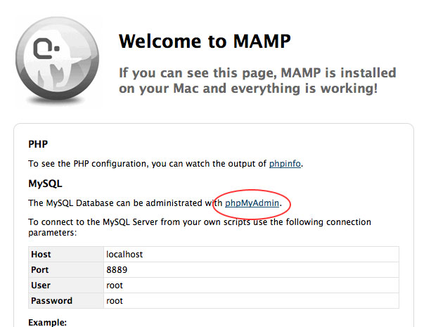 Now that your server is all set up, there are a couple of other things that you might want to set up. For example, remember that MySQL username and password that we read on the MAMP Start Page? Well, if you don't remember, that's okay. By default, both the username and password for MySQL were set to root. As you might imagine, this is not a very secure combination. Even though you're only testing locally, take the time to change those before moving forward: