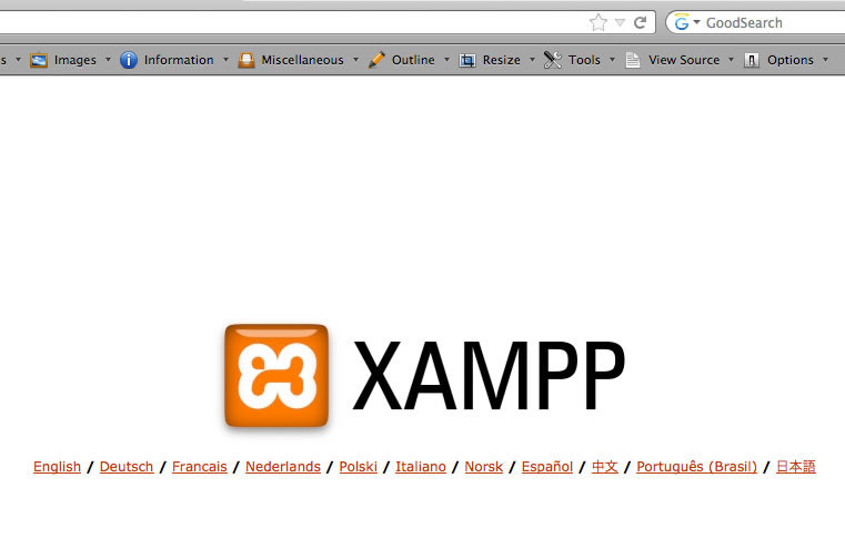 And once I select my language, I'm brought to the XAMPP Start Page. Just like the MAMP start page, there is a link to phpMyAdmin where I can set up the necessary databases that I will use for the sites I build on this local server. Additionally, to put this local test server to good use, you'll need to take some security precautions (such as setting a password for MySQL). For a checklist of these issues and how to remedy them, click on the link that reads Security. Address the security issues that concern you and we're ready to put in a site.