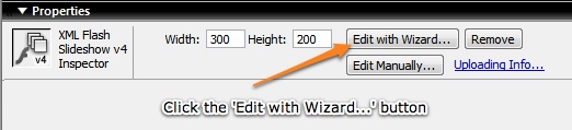 To launch the Edit Wizard, click the 'Edit with Wizard...' button in the Slideshow Inspector: