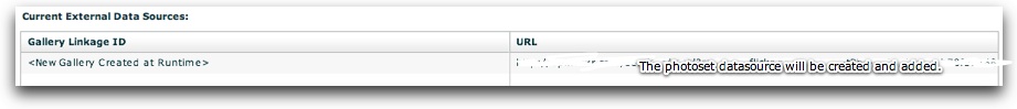 Important Tip: If you're new to the Flickr API or just want to add a specific photoset, you can use the Add Flickr Photoset tool (usage detailed in section below).