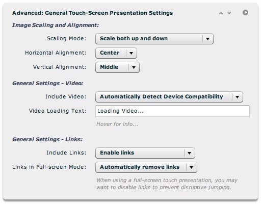 The Advanced: General Touch-Screen Presentation Settings pod contains general options for touch-screen presentations: