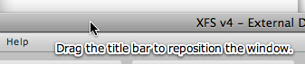 To resposition the window, drag the title bar (screenshots from Mac and Windows respectively):