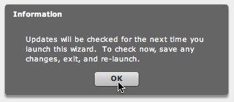 • Check for Program Updates - By default, the program periodically checks for updates and any new starter templates which might be available.  However, you can force an immediate check for updates by selecting this option.  You will receive this message:
