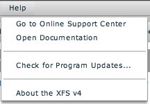 • About the XFS v4 - Displays a dialog with program information, including the build version.