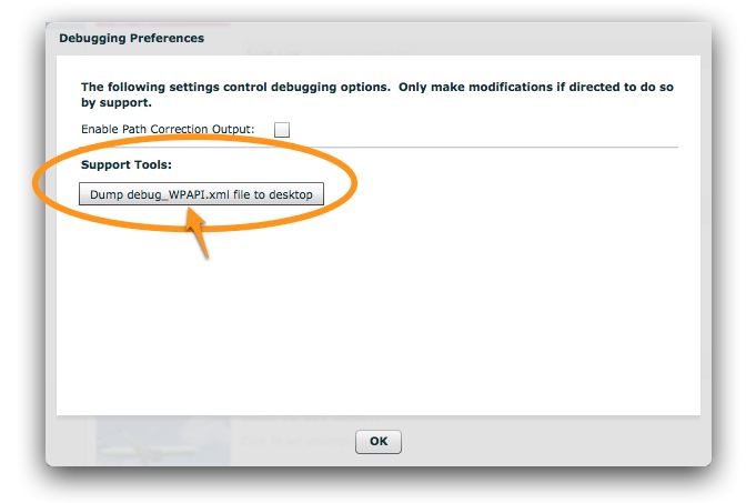 There will then be a debug_WPAPI.xml file on your desktop; send this file to support.
