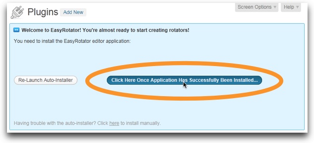 Once you have clicked the Activate option to activate the newly-installed plugin, the page will reload and you'll be prompted to install the EasyRotator editor application:
